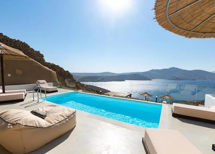 Deze gesitueerde in Mykonos Town Apellon Mykonos Villa Mykonos Town ligt op 15 minuten rjden van het Archeologisch museum van Mykonos en biedt een terras met uitzicht op de zee.
